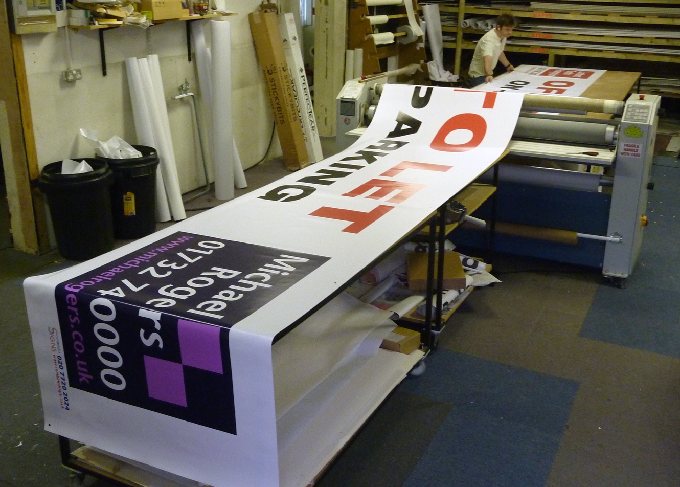We are just putting the finishing touches to a rather long banner, which is due to be installed on the side of a building. It measures over 9 metres in length.