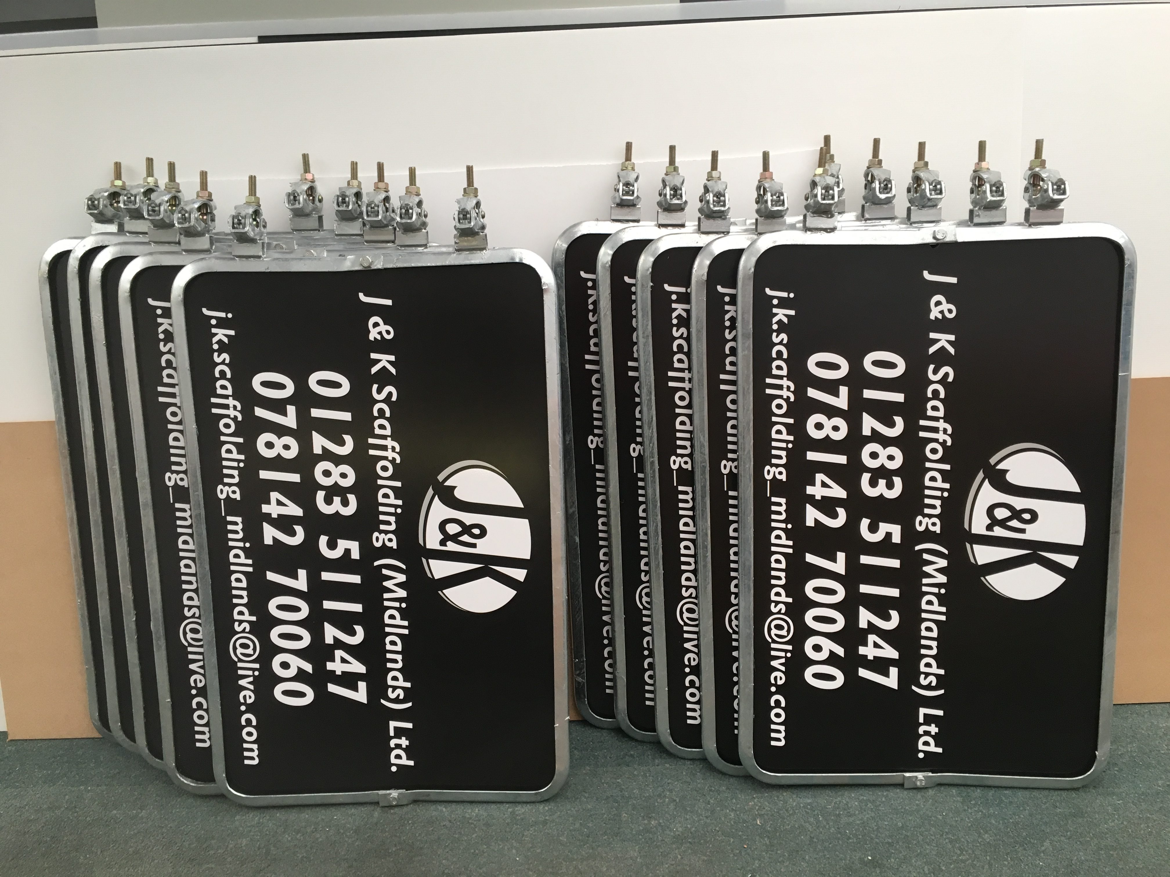 One of our little side lines that we promote through a mini website ScaffoldSigns.com, is metal framed Correx signs. Complete with clamps and fixings ready to go on scaffold tubes.