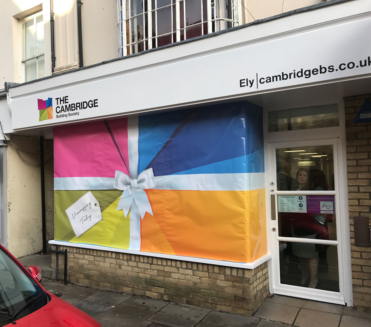 Bit of an unusual one this. We were asked to print enough bespoke wrapping paper to wrap an entire shopfront, to make it look like a Christmas present.