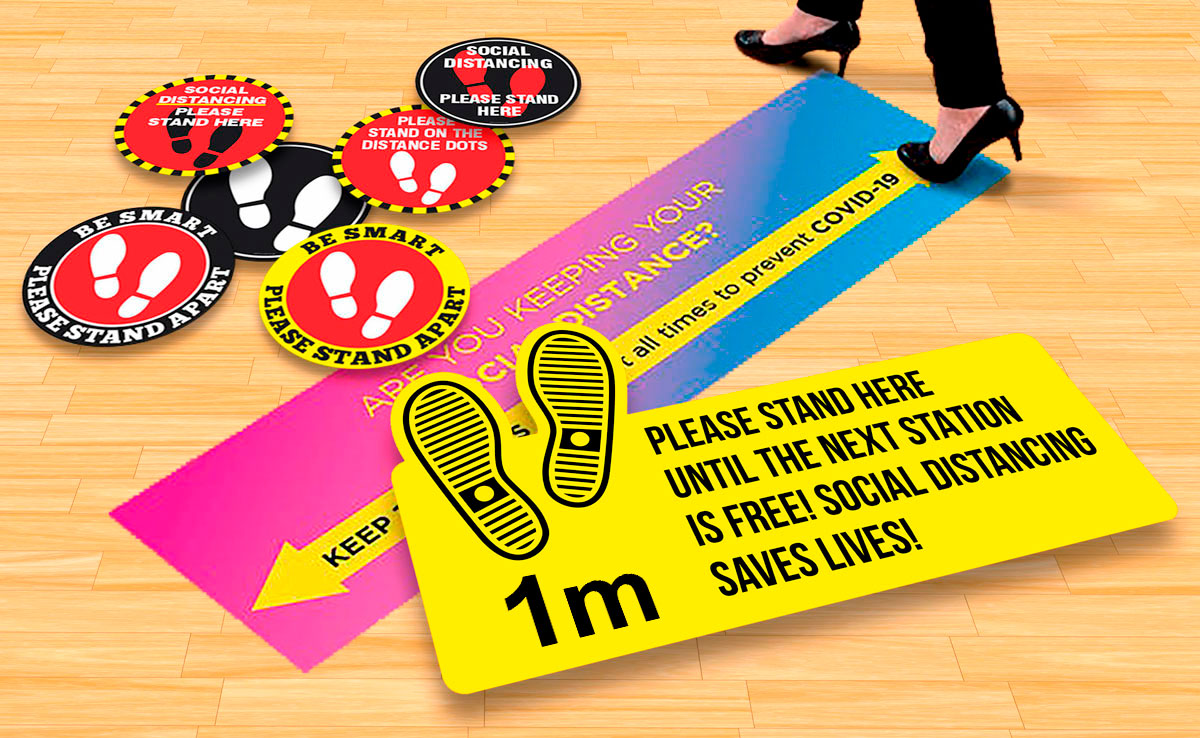 To help our fellow small businesses protect their staff and customers, we are printing these bespoke floor graphics to help promote social distancing.