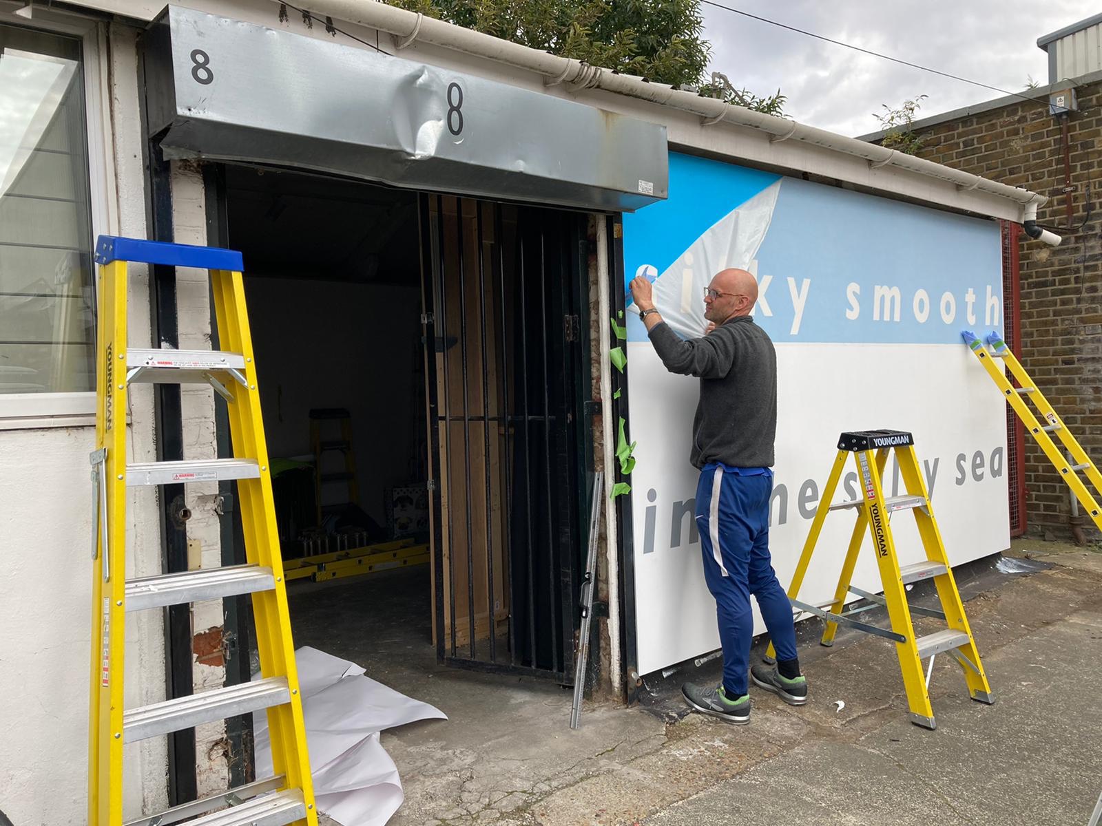 Using a special vinyl we CAD cut a lettering stencil which was used to paint directly onto the exterior wall of a building.