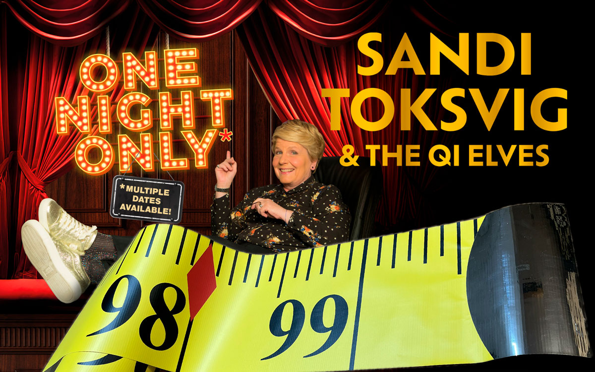 We were tasked with printing a giant tape measure for Sandy Toksvig to use in her stage show “One Night Only” with the QI Elves at the Theatre Royal Drury Lane this November.